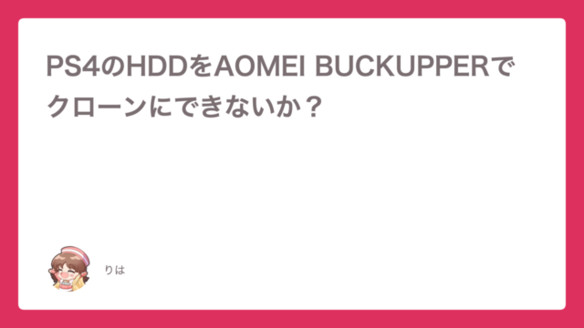 Uncategorized PS4のHDDをAOMEI BUCKUPPERでクローンにできないか? 2025年11月23日 りは りはのアトリエ 番外編:AOMEI BUCKUPPERでクローン出来ないか? https://www.atelier-riha.com/ps4-h …