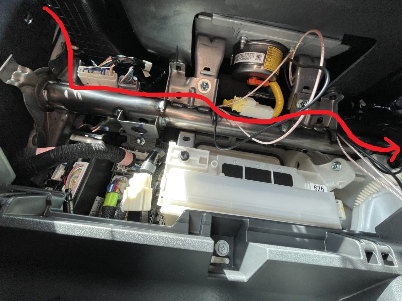 このハーネスを先ほど外したピラーの方へ走らせます