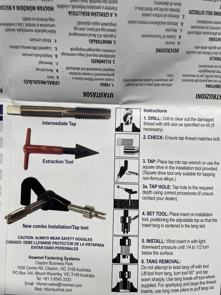 ※パイロットタップ付リコイルキット・スパークプラグ用リコイルキット・ブレーキキャリパー用リコイルキットには、挿入工具のタップハンドルは付属されていません。