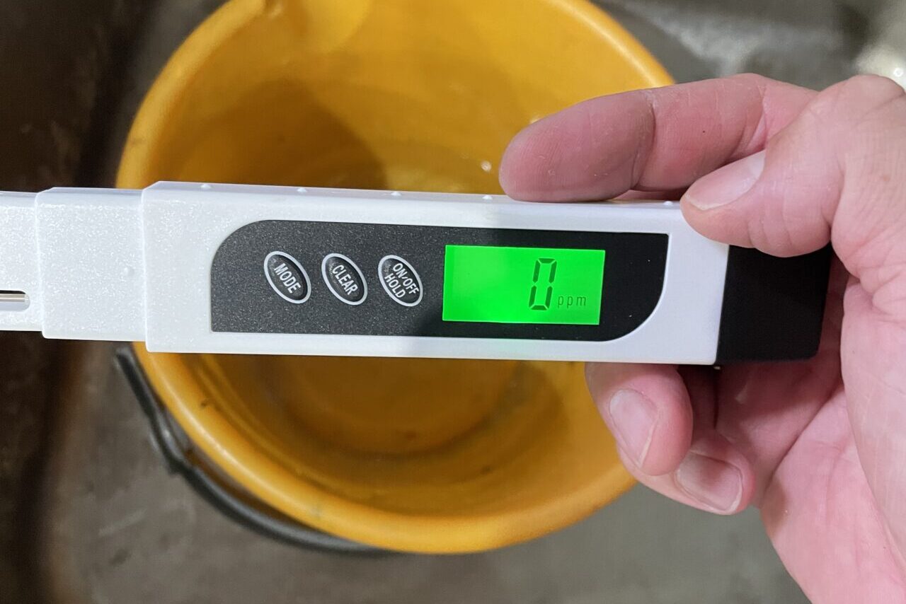 - TDSメーターで純水を確認(000ppm)